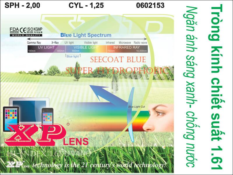 Trước khi phủ thêm lớp Seecoat Blue và Supper Hydrophobic tham (khảo thêm lớp phủ Hydrophobic) mắt kính XPLens 1.61 Seecoat Blue vẫn phủ cứng chống trầy xước, phủ AR chống phản quang, Ngăn tia UV400